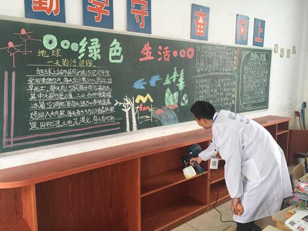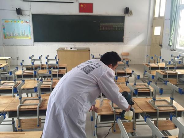 教師辦公室桌椅進行除醛藥劑噴涂!